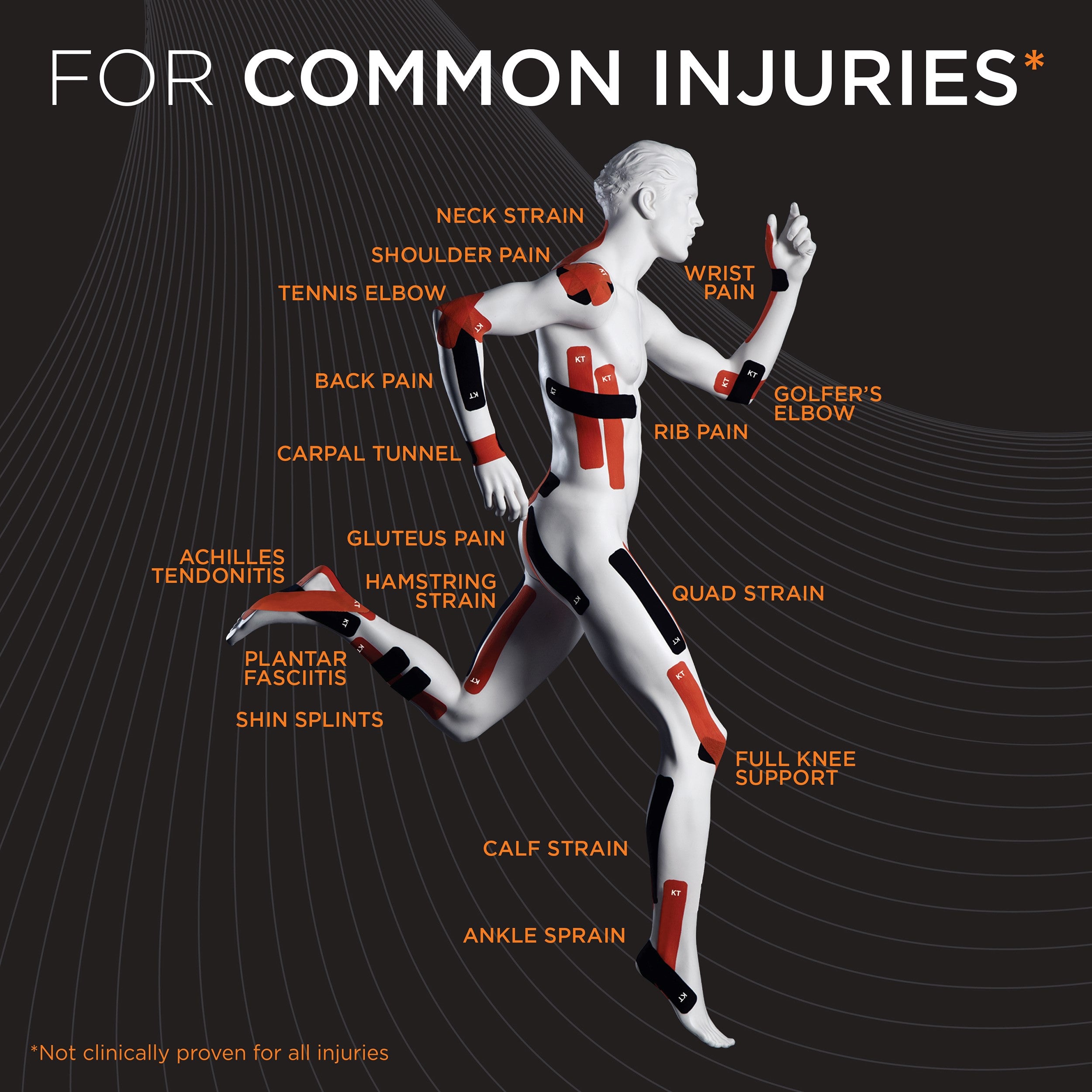 KT Tape Pro™ features a much longer elastic core which delivers better support for muscles, joints and tendons without restricting comfort and range of motion.